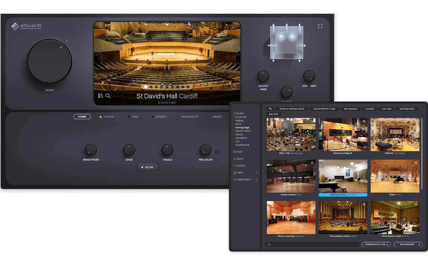 Altiverb/アルティバーブは、実在する空間の音響特性を録音素材やライブ・サウンドに適用することで、あたかもその場所で再生されているかのような効果を与えるプラグインです。収録されている空間の情報は、シドニーのオペラハウスからスコットランドの地下重油貯蔵タンクまでに至ります。