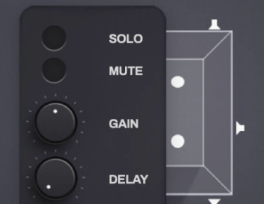 SOLO/ソロ、MUTE/ミュート、GAIN/ゲイン、DELAY/ディレイなど、出力セクション各々の設定が可能(XL版のみ)。