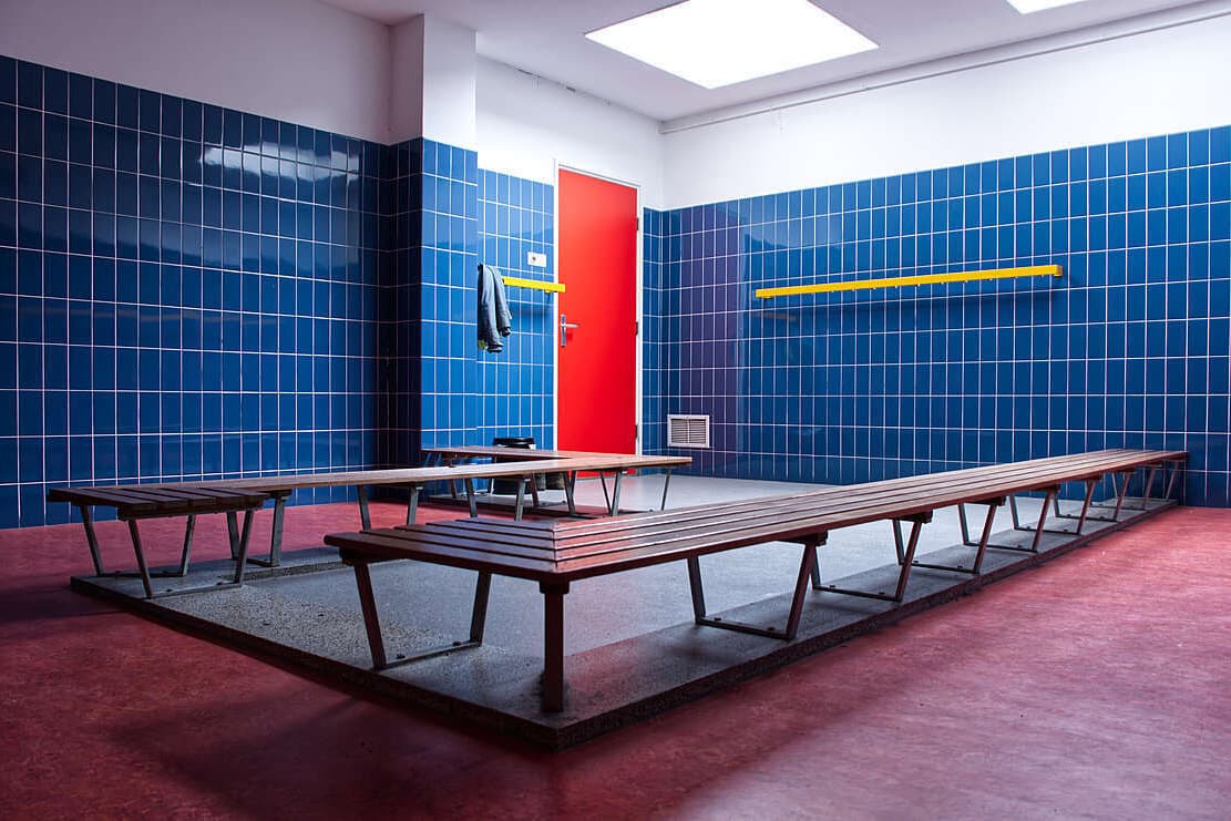 スポーツ関連の複合施設、Sporthal Schalkwijk内のロッカールーム。壁はタイル製です。