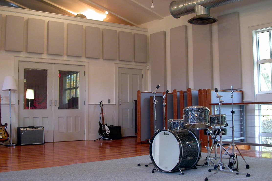 Clubhouseは世界レベルの宿泊レコーディング施設で、マンハッタンから北へ90分程の、美しくて静かな場所にあります。クラブハウスのリラックスした雰囲気だけでなく、重視されるのは31 x 29フィートのトラッキング・ルームです。広く活き活きとした響きで、ダンピングを極力抑えた収録により、IRは開放感のある木製ドラムのようなサウンドとなりました。