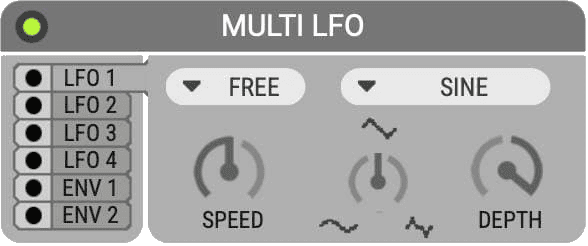 4つのLFO(低周波発振器)と2つのエンベロープ・フォロワで、各パラメータを自動制御します。設定は赤いケーブルをクリックして、制御したいパラメータにドラッグするだけです。LFOのスピードは、DAWのテンポや様々な波形に同期可能。