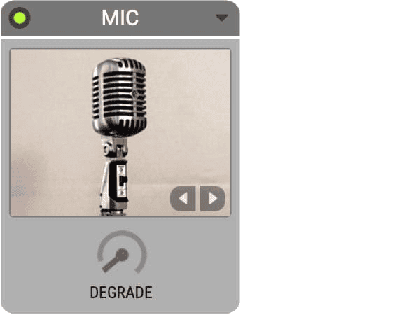 量子化ビット/サンプリング周波数の劣化調整です。十字マークを下方向にドラッグすると、量子化ビット数が32bit〜2bitの範囲で減少。左方向にドラッグすると、サンプリング周波数が減少。エイリアス効果を最大限に活かすため、非常に粗いサンプリング周波数の変換アルゴリズムが組み込まれています。