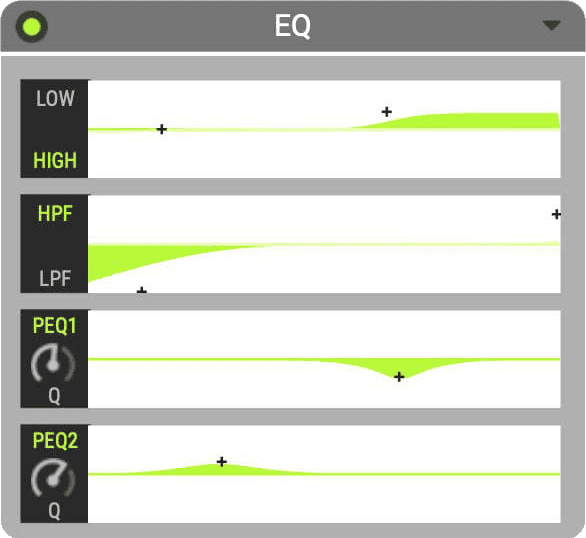 調整する際は、ポップアップ画面が表示。周波数やQ幅の情報も確認しやすいでしょう。