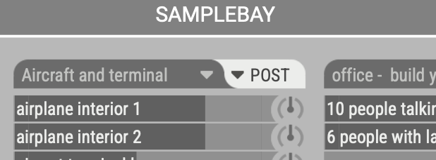 スピーカーが存在する場や状況を、マウスやMIDI操作で演出できます。5GBに及ぶ効果音や音楽のライブラリが付属のうえ、自由に使用可能。音声サンプルは5つのテーブルに分かれ、各々に12まで音声を収録。クリックやMIDIノート情報で再生されます。