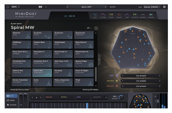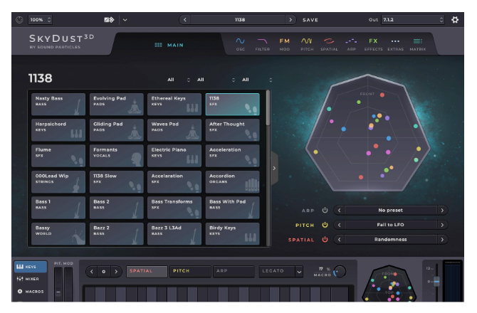 3D音声出力のプラグイン・シンセサイザー。出力は多数の "イマーシブ" フォーマットに対応。ステレオ音像では素晴らしく、空間オーディオでは比類のない性能を発揮します。