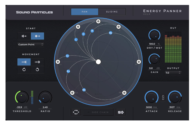 サウンドの強さによって、音源の動作を制御。2ch〜7.1.2ch、Ambisonicsに至るまで、パンニングに動的な奥行きを与えます。