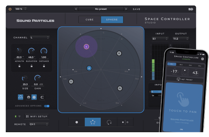 専用アプリを使って、モバイル端末による音源操作を実現した2D/3Dパンナー・プラグインです。4種類のパンニング方式で、様々な軌道を作成可能。