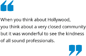 業界の優しさには驚きました。ハリウッドというと、非常に閉鎖的なコミュニティを思い浮かべると思います。確かにスタジオに入るには事前登録が必要ですし、エックス線による身体と手荷物の検査や、IDによる入場審査もあります。それでも多くの場合はメールを送るだけで、会いに来ないかと招いてくれたり、Sound Particlesの件で話をしたいと言ってくれました。