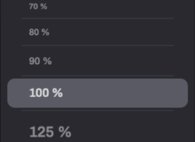 70〜125%の固定値で、プラグイン画面のサイズが調整可能