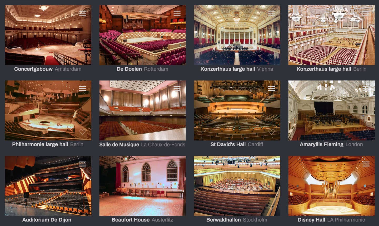 ベルリン、シドニー、ウィーン、マサチューセッツなど、40以上ものコンサート・ホールにて、あなたの音楽を再生することができます。その多くが、指揮者の選ぶ世界のトップ10にランクされる施設です。